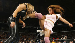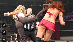 After winning the Diva Search, Christy Hemme had big plans to continue her winning streak – at WrestleMania. However, the current WWE Women's champion was veteran Trish Stratus and ring experience trumped the dreams of the Playboy covergirl.