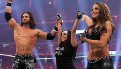 Trish Stratus walked into WrestleMania empty handed and left with gold. 54, 000 fans witnessed Trish defeat two of her biggest adversaries, Victoria & Jazz making her a four-time WWE Women's Champion.