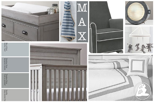Just thought I'd mention while his room will be grey, he'll have plenty of color his playroom which will be filled with those crazy, colorful animals and toys thanks to his amazing score at his shower! The reason I went with the grey is it is subdued, quiet and reserved, so it does not stimuate, energize or excite. Grey is solid and stable and it is said it creates a sense of calm and composure. I wanted Max's room to feel safe and he'll know it is the place we go to wind down, and get ready for sleepytime. And, when it's time to discover and learn – we'll go to the playroom!