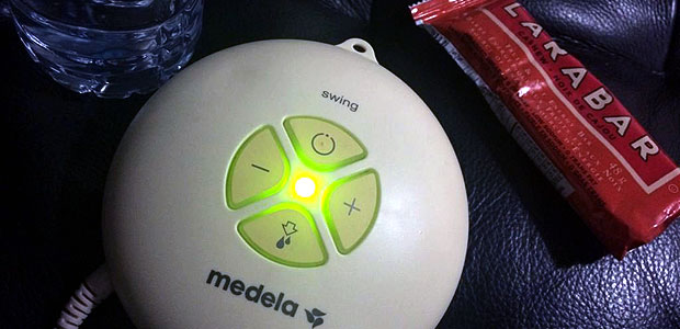Working mama Trish takes a break with her go-to snack, Larabar, while she takes care of some baby business.
