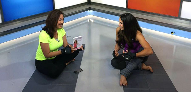Trish visits Global Morning Show and gives host and fellow new mom Kris Reyes, a taste of what to expect from the new Stratusphere Yoga DVD.