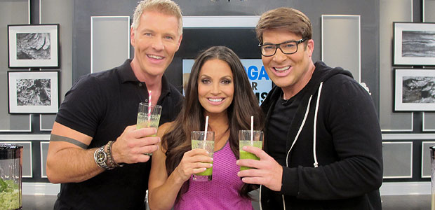 Trish lands at the CBC studios to film The Steven and Chris Show. First she introduces the boys to her favorite shakes.