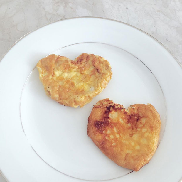 I found this cute little heart shaped frying pan on Amazon, I use it to make mini omelettes or add pancake batter to add some love to breakfast!
