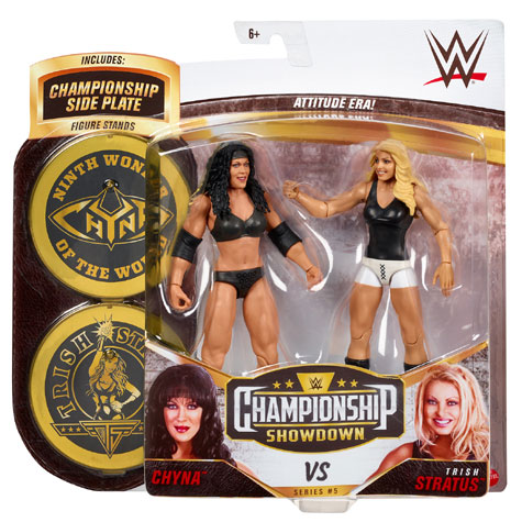 It's time for a WWE Championship Showdown with these two Superstar action figures celebrating the greatest matches in WWE history! Each pack features two approximately 6-inches tall figures with articulation, TrueFX enhanced facial detailing for life-like authenticity, and ring gear. Recreate realistic, big-event showdowns with these awesome figures, each with its own double-sided Championship title plate to enhance the battle excitement and use as a display stand for the figures!